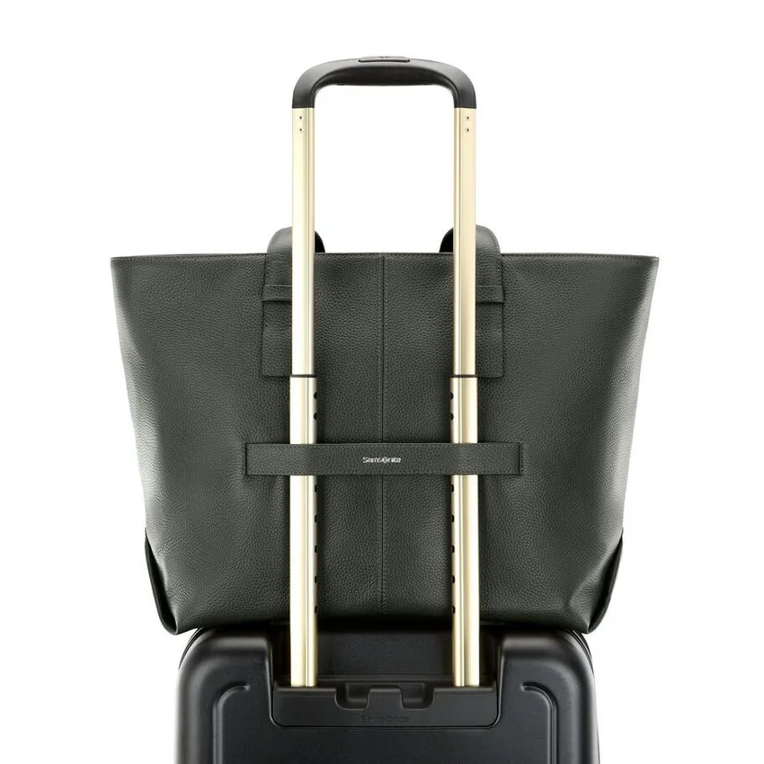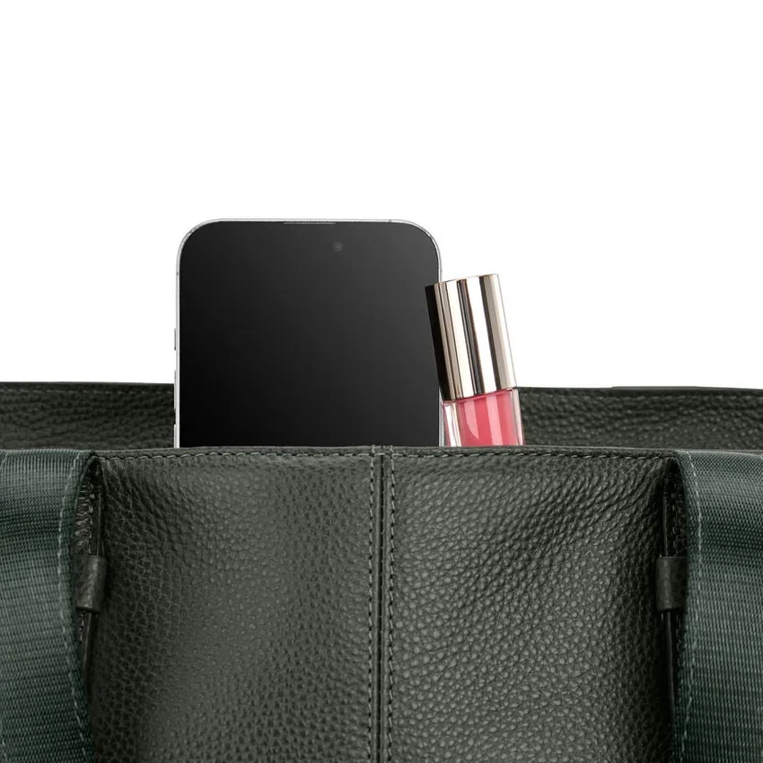 All’interno della borsa shopper in pelle troverete una custodia imbottita per laptop, un portabottiglia interno e delle tasche organizzative. Una discreta cinghia Stackit™ sul retro garantisce la massima praticità in viaggio, sia che siate diretti in ufficio o in fuga per un weekend fuori porta.
