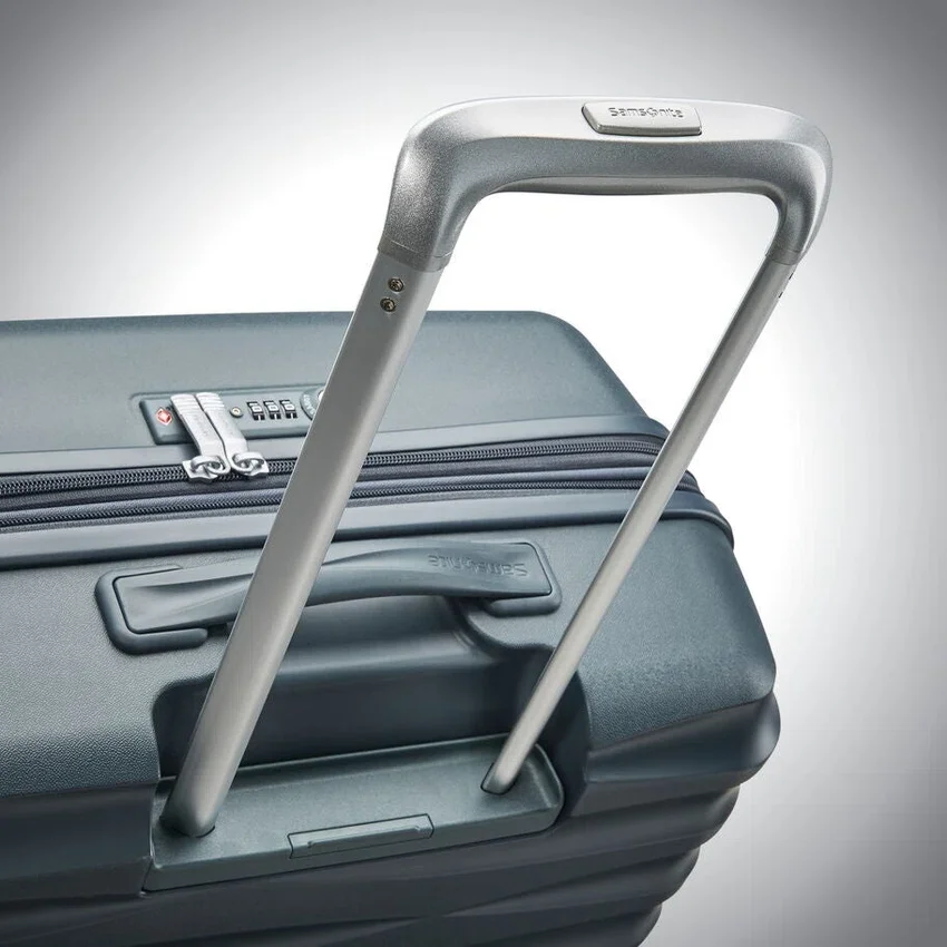 le maniglie laterali a scomparsa rimangono a filo con la valigia per proteggerla da eventuali danni