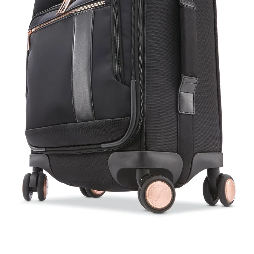 - ruote spinner doppie: garantiscono una manovrabilità facile e fluida durante i viaggi a lungo raggio su varie superfici