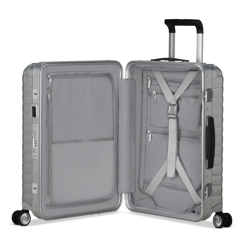 Robusto ma di grande impatto, il nostro bagaglio a mano in alluminio da 5,37 kg è dotato di tutte le caratteristiche che hai imparato ad apprezzare, tra cui ruote girevoli a 360° per spostarti senza sforzo e serrature approvate dalla TSA. Con il passare del tempo, le valigie in alluminio tendono a sviluppare graffi e ammaccature, acquisendo così più carattere ad ogni viaggio.caratteristiche esterne: