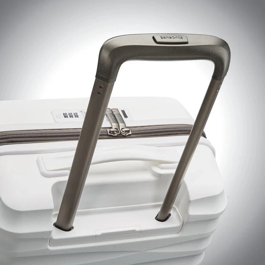 Le maniglie laterali a scomparsa rimangono a filo della valigia per proteggerle da eventuali danni