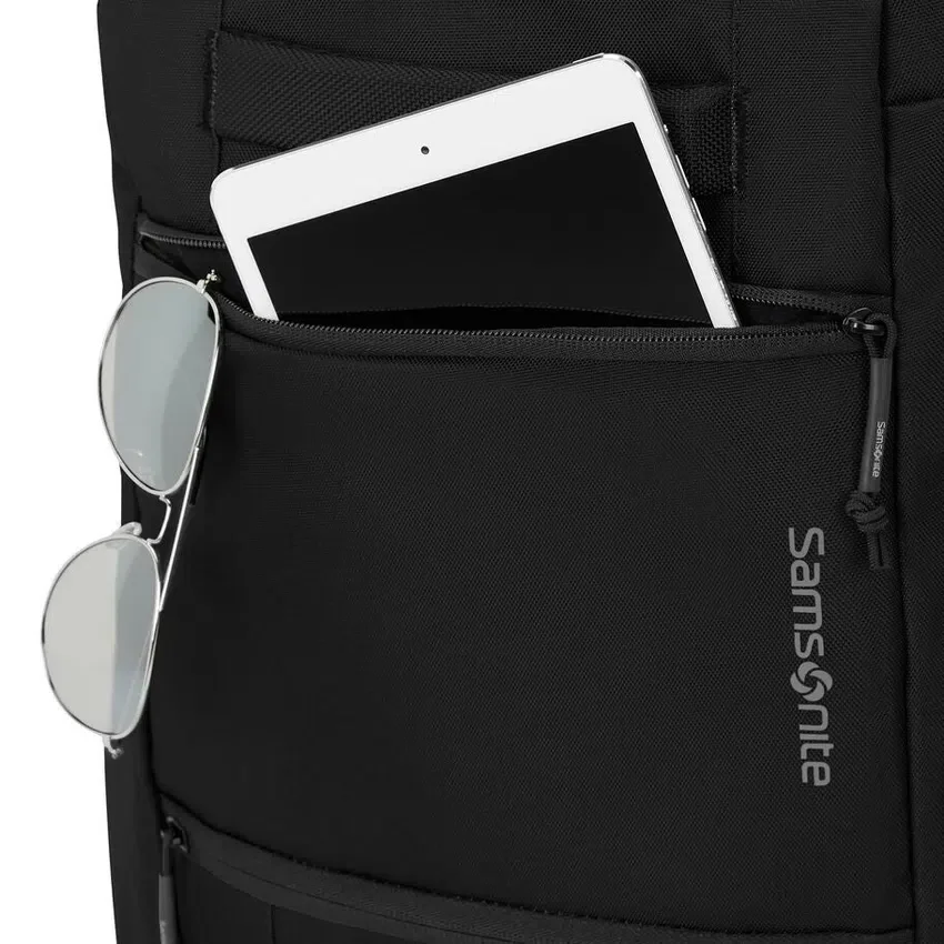 Tasca laterale elastica perfetta per riporre una bottiglia d’acqua; SmartSleeve™ si adatta ai manici verticali per una facile trasportabilità