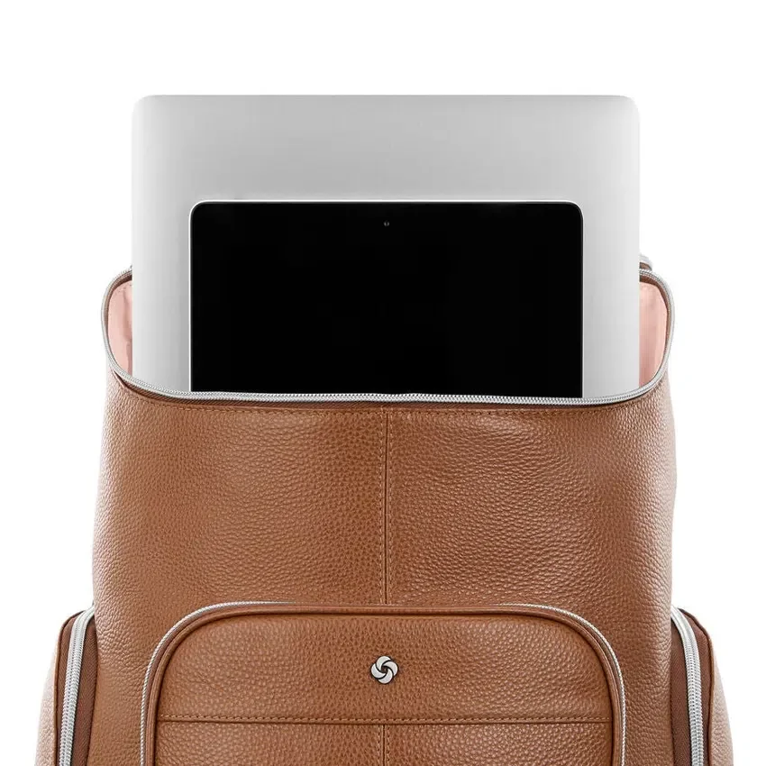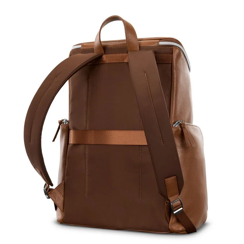 lo zaino in pelle deluxe è dotato di scomparti imbottiti per laptop e tablet, una spaziosa tasca frontale, due tasche laterali con cerniera per la bottiglia d’acqua o l’ombrello e comodi spallacci. la cinghia stackit™ integrata rende più agevoli gli spostamenti quotidiani e i viaggi.