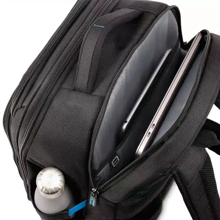 Lo scomparto dedicato e imbottito per dispositivi tecnologici è dimensionato per contenere laptop fino a 15,6″ e tablet di dimensioni standard nella custodia separata foderata in tricot.
